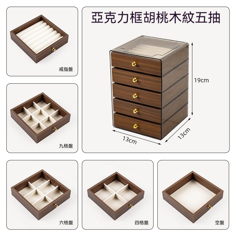 這款 胡桃木紋飾品收納盒,幫妳輕鬆收納所有心愛飾品,整齊又優雅!✅ 五層大容量|分區收納超整齊 項鍊、耳環、耳釘、戒指、手鍊… 每層都有自己的家,拿取超方便! ✅ 高檔胡桃木紋|質感滿分 復古木紋設計,低調奢華,放在梳妝台上就像一件藝術品 ✅