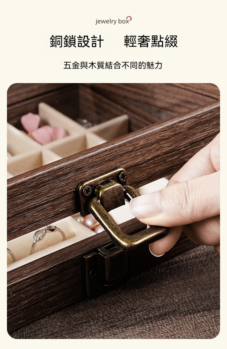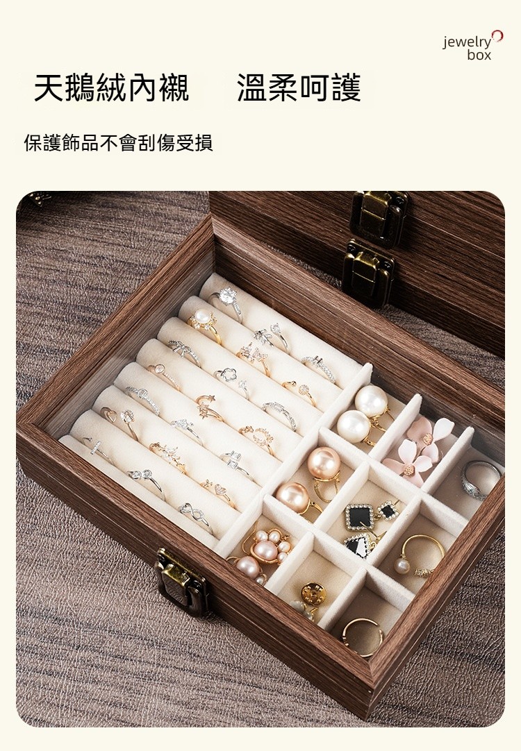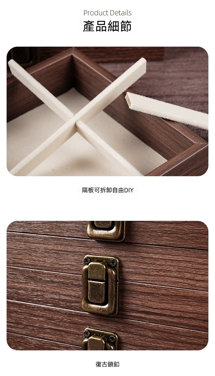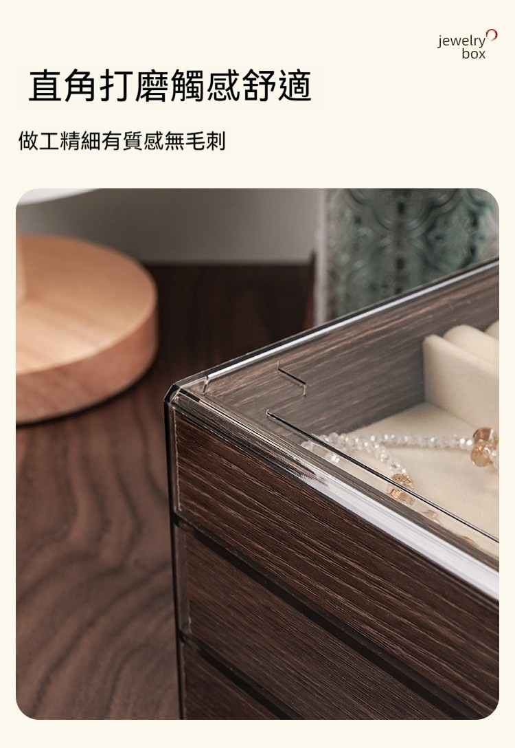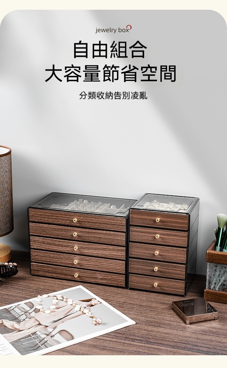 這款 胡桃木紋飾品收納盒,幫妳輕鬆收納所有心愛飾品,整齊又優雅!✅ 五層大容量|分區收納超整齊 項鍊、耳環、耳釘、戒指、手鍊… 每層都有自己的家,拿取超方便! ✅ 高檔胡桃木紋|質感滿分 復古木紋設計,低調奢華,放在梳妝台上就像一件藝術品 ✅